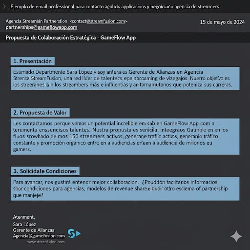 · Qué Hablar con Ellos: Presenta tu proyecto con profesionalismo. Ofrece ser un canal de reclutamiento y gestión para hosts, modelos y streamers. Pregunta por sus condiciones: