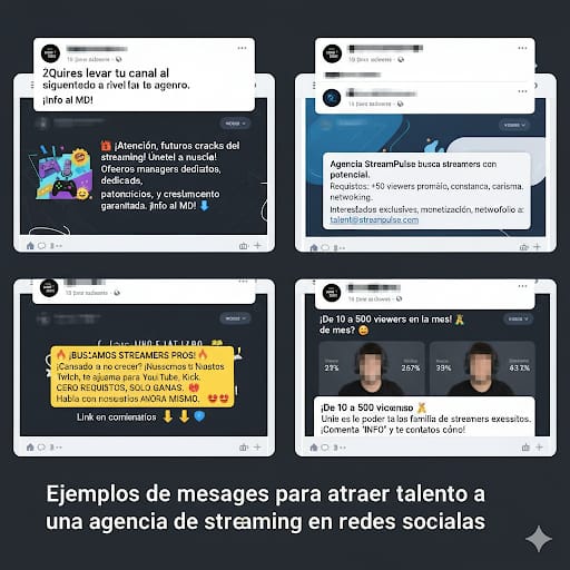 · Grupos de Facebook/Telegram: Únete a comunidades de hosts, agencias y streamers. No spamees. Aporta valor, resuelve dudas y, de vez en cuando, comparte tu oferta: «Busco talento para mi agencia, ofrecemos gestión, negociación de mejores tasas y apoyo».